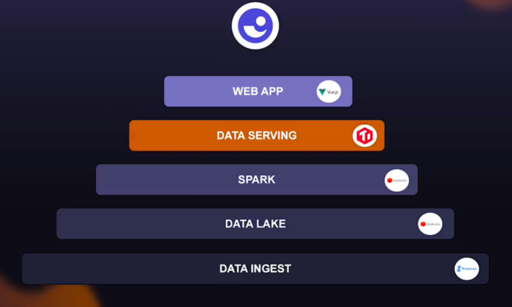 Catalyst 的新架构分为五个数据层:数据摄取层、数据湖层、Spark 层、数据服务层和 Web 应用层。原始数据通过摄取层进入,并继续进入数据湖层。Spark 层组合数据对象,执行预计算,确保数据有意义。数据服务层存储所有预处理过数据以供客户查询。因为直接影响用户体验,数据服务层对 Catalyst 来是最重要的,也成为 Catalyst 对新数据栈迫切需求的地方。数据服务层以下的各层不需要是实时的。然而,在数据服务层,Catalyst 需要亚秒级的延迟,以便客户能够迅速获得结果。