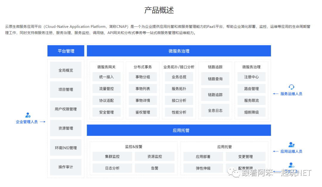 云原生微服务应用平台(Cloud-Native Application Platform,简称CNAP)是一个为企业提供应用托管和微服务管理能力的PaaS平台,帮助企业简化部署、监控、运维等应用的生命周期管理工作,同时支持微服务注册、服务治理、服务监控、调用链、API网关和分布式事务等一站式微服务管理和运维能力。