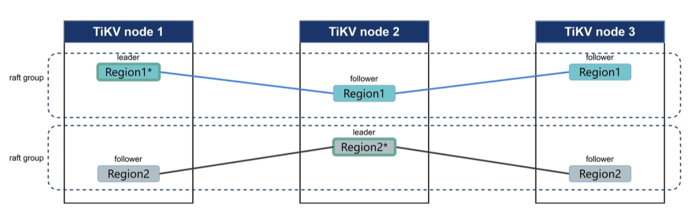 Region在多副本中会有一个leader副本,leader副本是集群中的管理者,读写都走leader,并且会定期给follower发送心跳信息告诉从副本我是leader。leader的修改信息会以日志的方式传输到其他follower上以维持数据库的一致性。