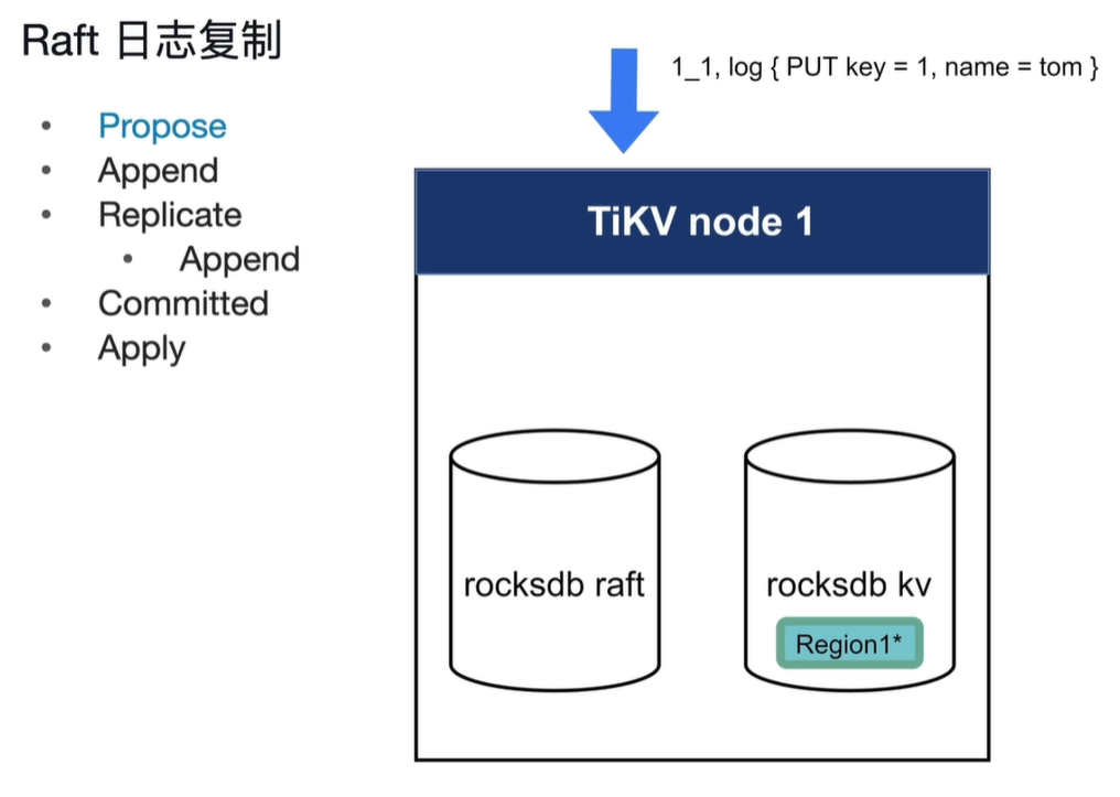 - Replicate:将主leader的日志复制到其他节点,其中Append在其他节点中进行