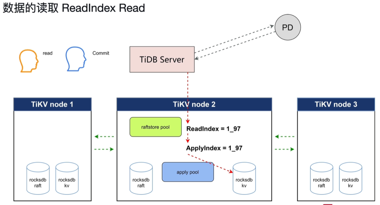 当读取开始时会设置最新raft commit的值为Readindex,当apply到Readindex的值时才开始读取,这样就一定会读到已经提交的数据。