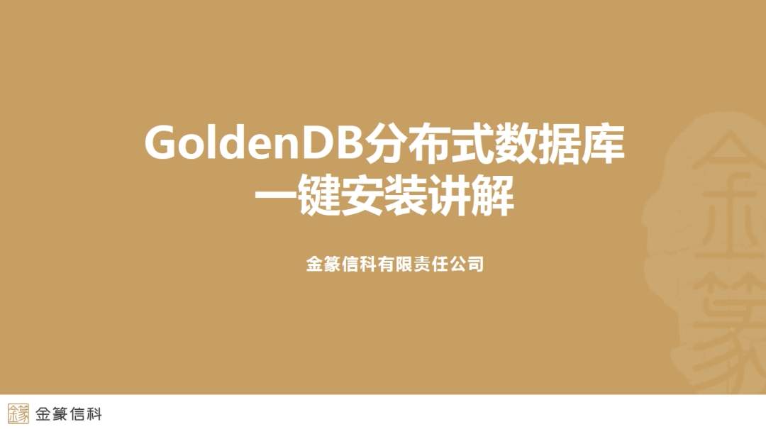 本期是GDCA课程第三期课程《GoldenDB分布式数据库一键安装讲解》