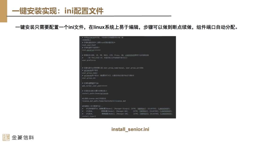 本期分享的是GDCA课程第三期课程《GoldenDB分布式数据库一键安装讲解》。