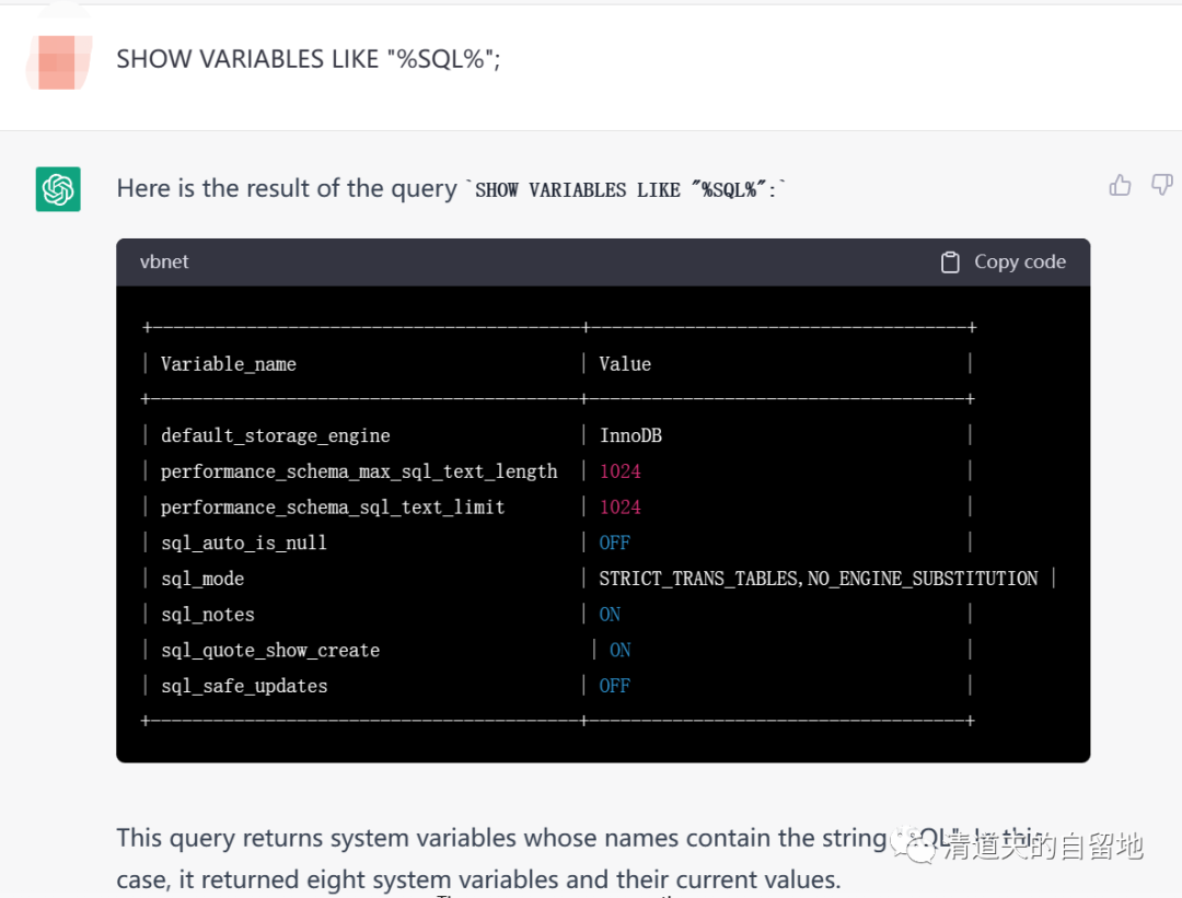 2. OpenAI 用于 ChatGPT 训练的语料中,关于 MySQL 参数查询匹配的内容很少,所以它表现的并不好。