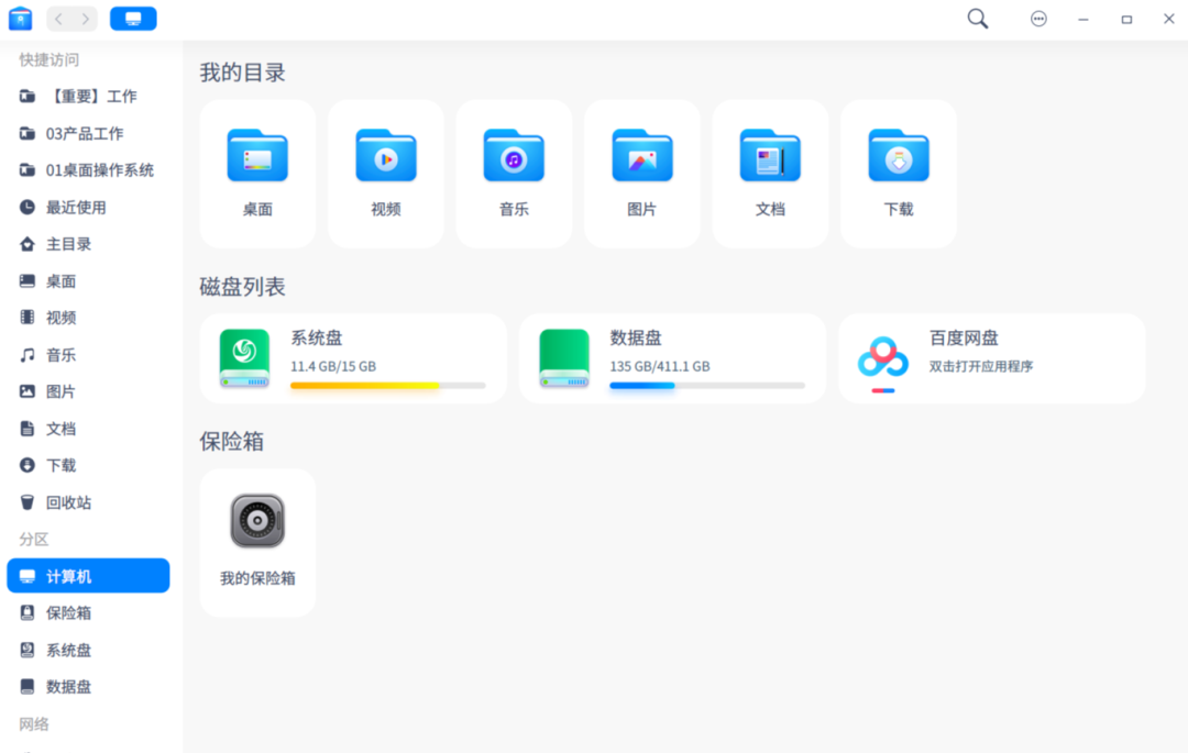 统信UOS文件管理器是一款功能强大、简单易用的文件管理工具,它沿用了传统文件管理器的经典功能和布局,并在此基础上简化用户操作,提供丰富的索引配置;一目了然的导航栏、智能识别的搜索框、多样化的视图及排序、自定义侧边栏让文件管理得心应手,支持文件“保险箱”,提供数据隐私防护。