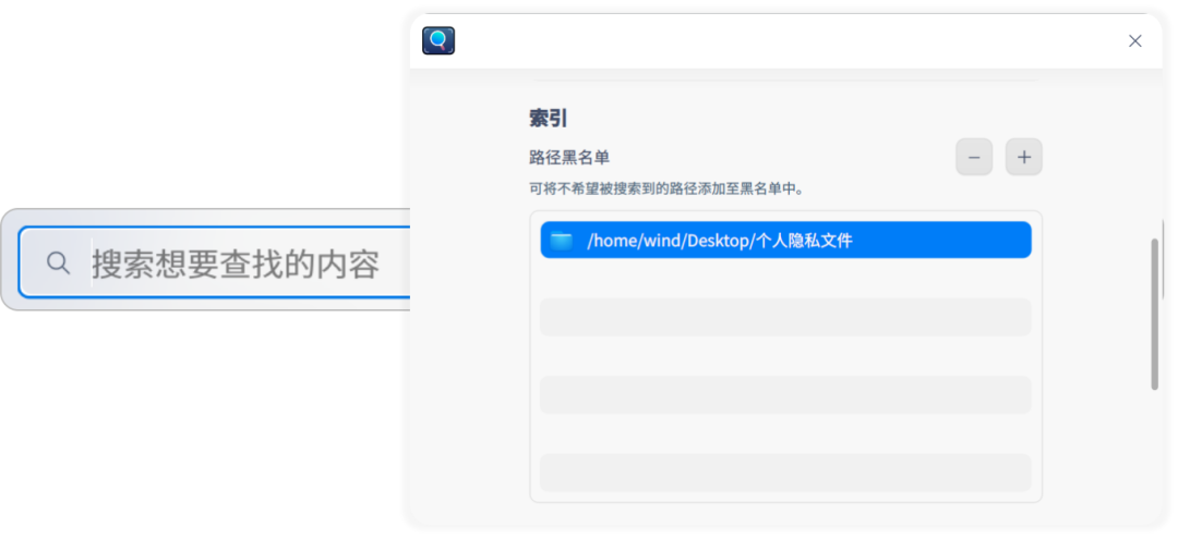 当有些涉密文件或隐私文件不希望被搜索到时,你可以选择不希望被搜到的路径添加到黑名单中,保护搜索隐私安全。