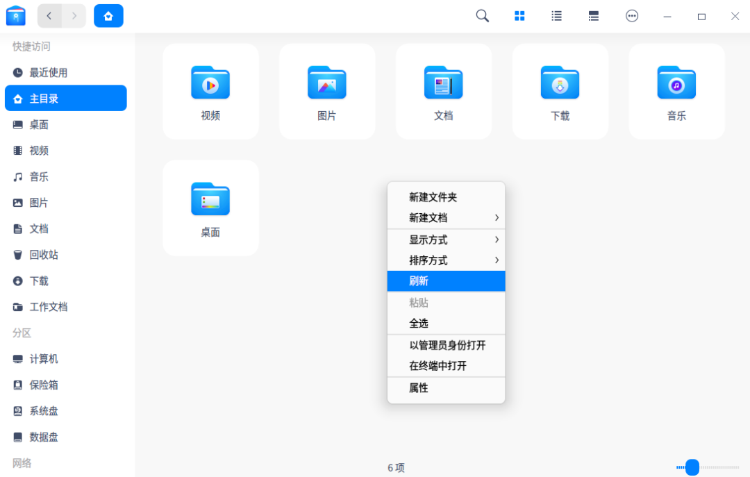 文件管理器和桌面均提供“右键菜单刷新”和“F5刷新”功能,便于刷新文件列表、更新文件信息,从而也延续了你的使用习惯。