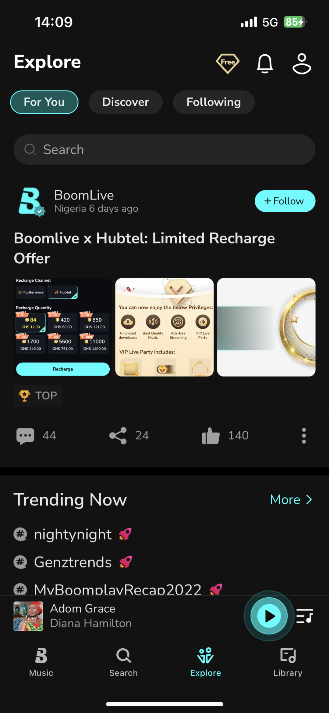 Boomplay决定给非洲兄弟们带去一点小小的中国震撼。作为“非洲手机之王”传音旗下的音乐流媒体平台,Boomplay继承了最懂非洲的基因。一年一亿部神话背后,“四卡四待”抓住了非洲兄弟的心,“智能美黑”抓住了他们的眼睛,更有“手机低音炮”抓住了他们的耳朵,在嘈杂环境里也能发挥能歌善舞的天赋点。Boomplay的前身是传音手机上的音乐播放器。基于多年来对非洲音乐风格的深入研究,Boomplay已经是非洲市场上最大的音乐流媒体平台,月活用户超过9000万。到了2022年,Boomplay想要进一步,在非洲大陆打开直播市场。