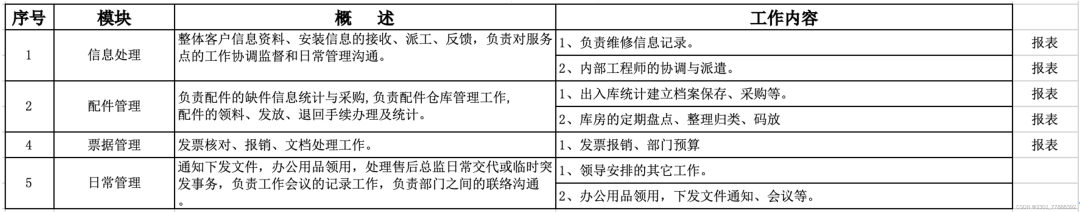 本人在一家净水器行业的公司做售后助理的岗位,平时 80% 的主要工作,就是跟 excel 报表打交道,以下为本人的岗位职责: