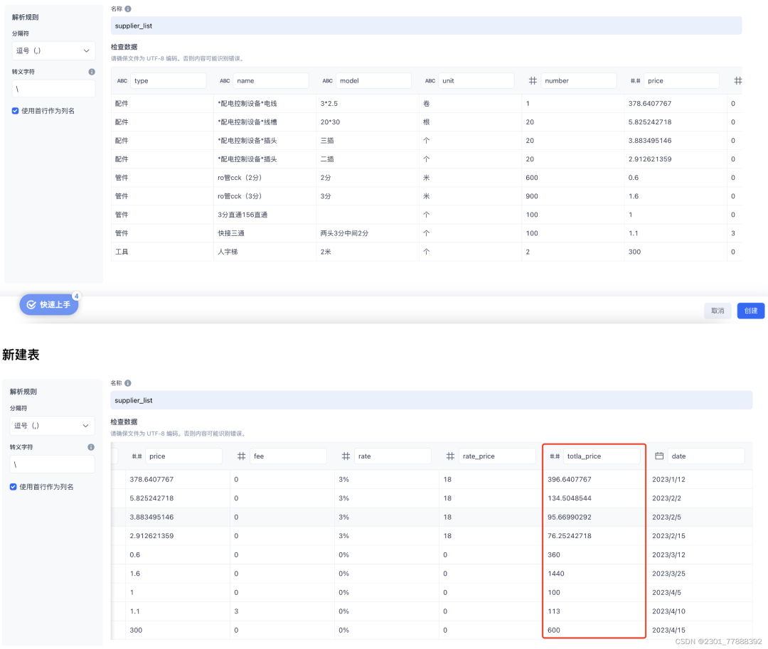 注:其中 excel 中写的计算公式(=SUM(number*price + fee + rate_price))也可以识别到,点赞!