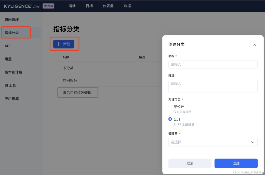 2. 为了可以更便捷的管理指标,可以新建一个分类