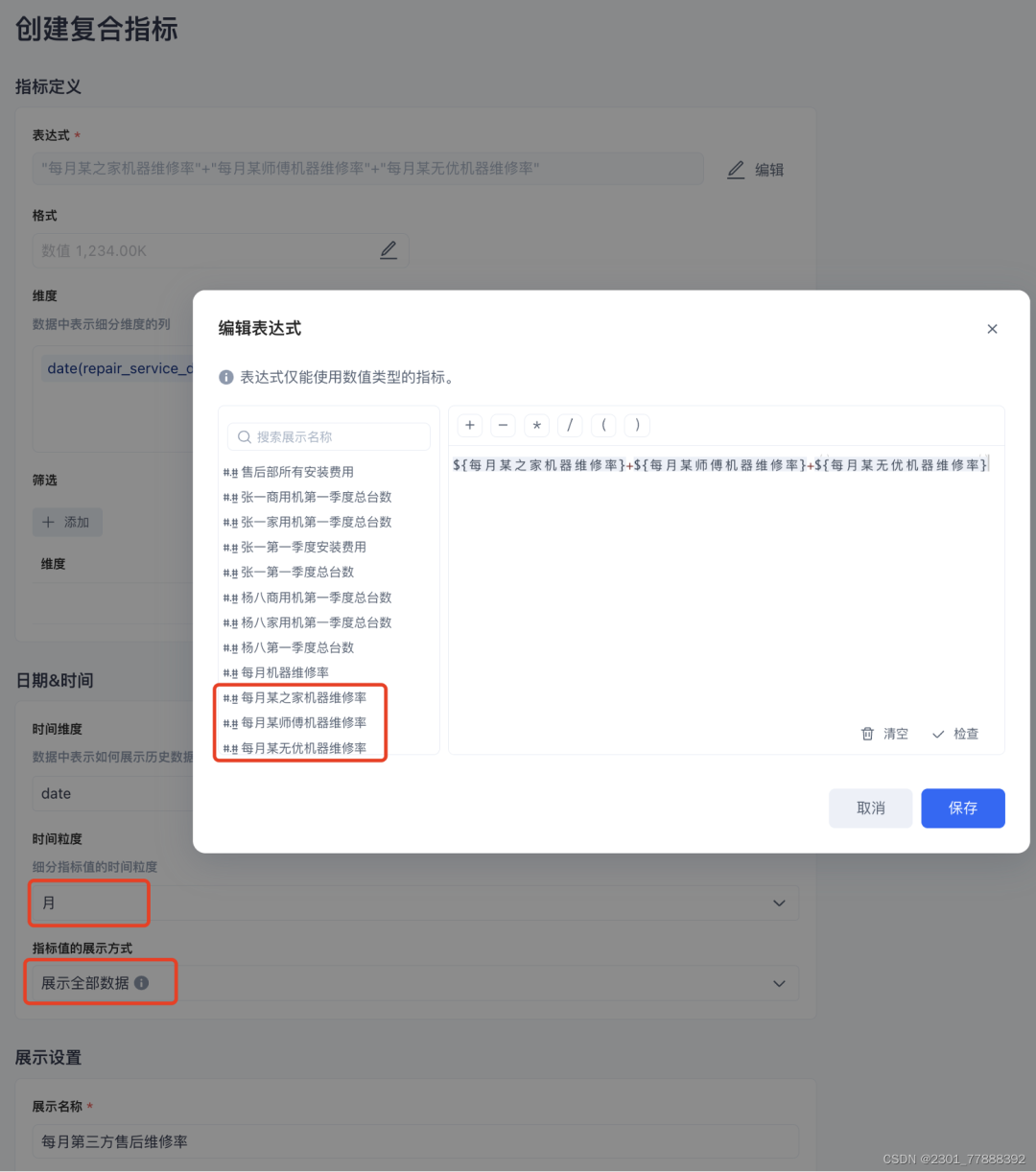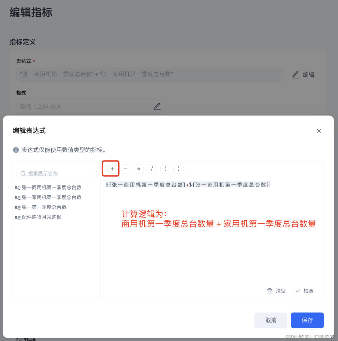 注:这里可以使用关联指标的动态数据,也可以手动添加固定的值。