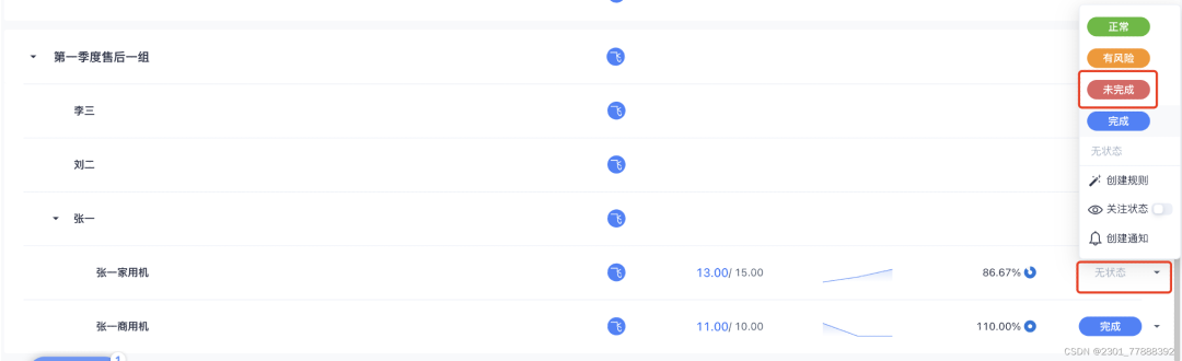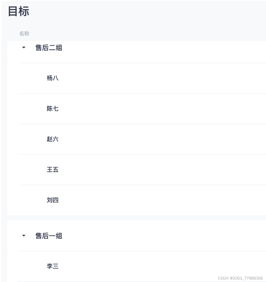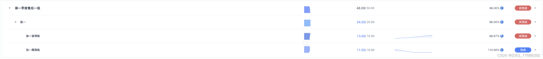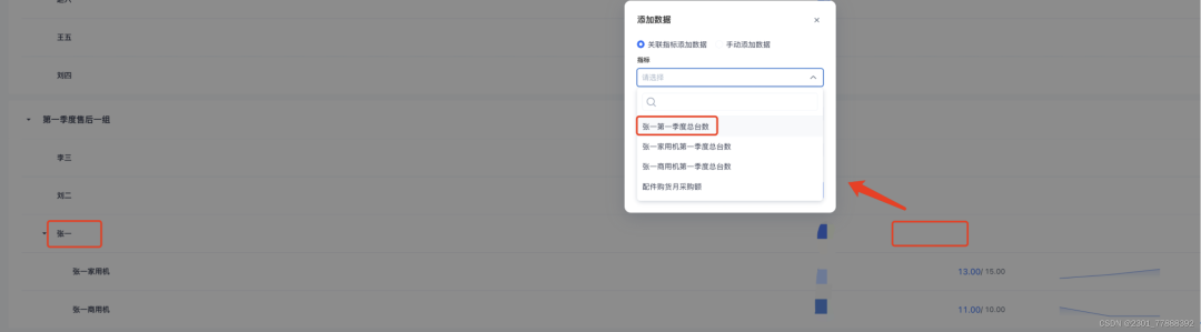 在目标管理中,新增2个层级分组,每个售后员再对应两种机型的子目标。