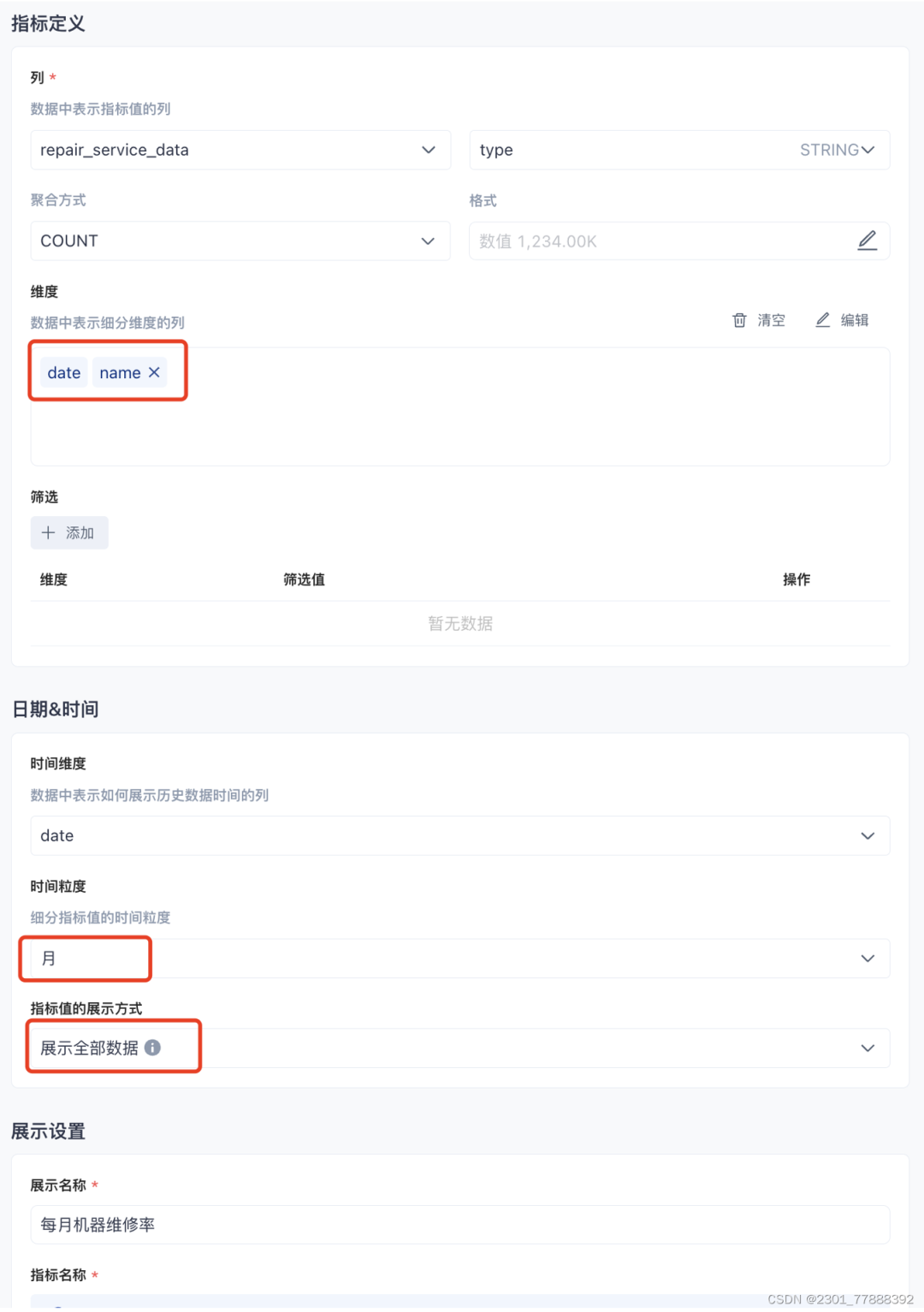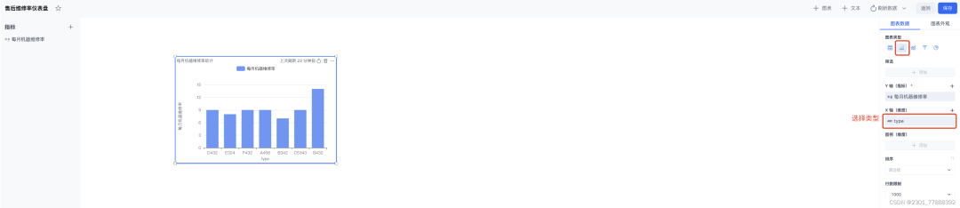 注:将两个指标向右拖动到仪表盘可编辑区域,进行参数调整。