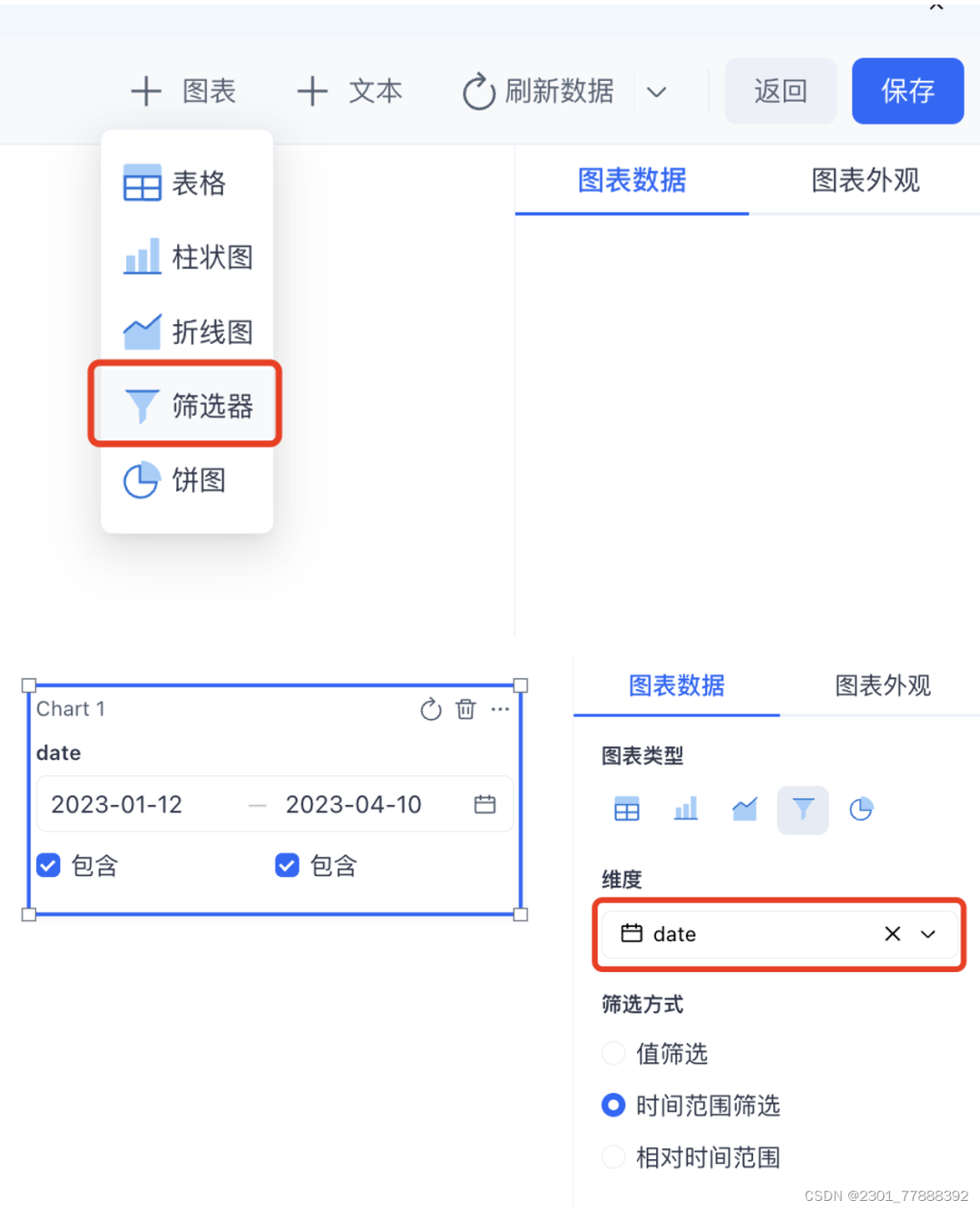 注:目前发现只能一个时间段,一个时间段进行比较,不能在一个时间段,看到某个纬度的周期性变化。如,想搜索1月到4月,按月来看 type 的周期性变化。