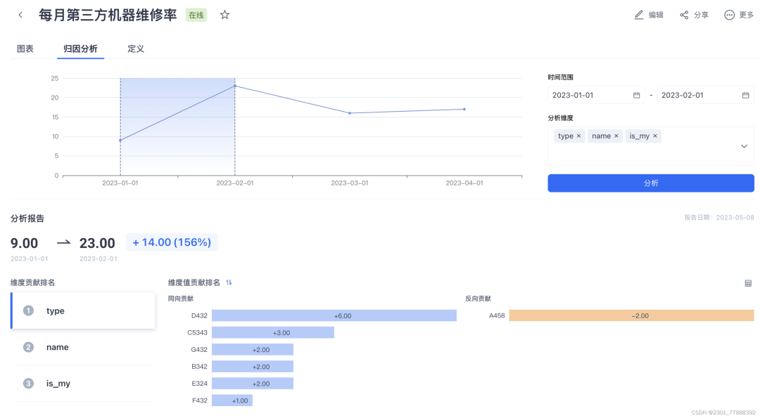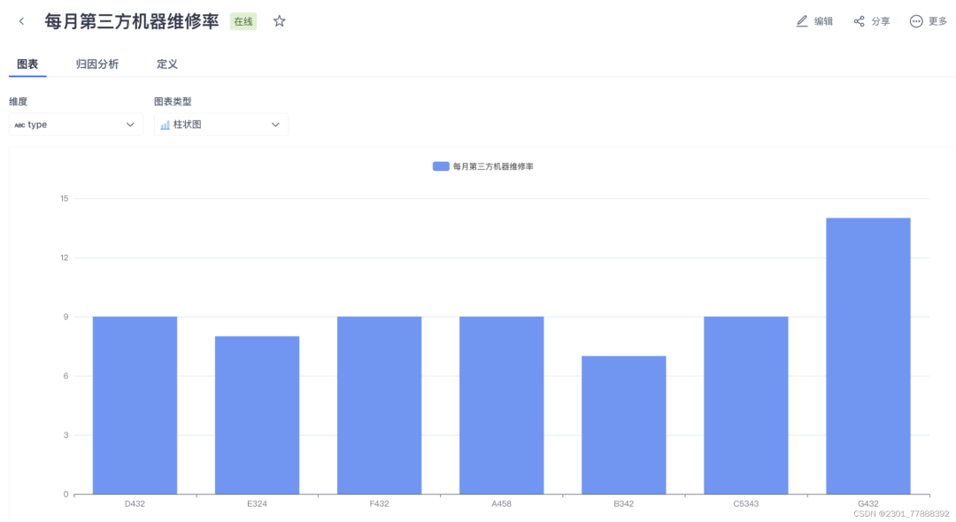 注:机器的维修率、第三方与我方维修率、第三方与我方机器型号维修率,再配上时间纬度,可以随时关注数据的变化形态。