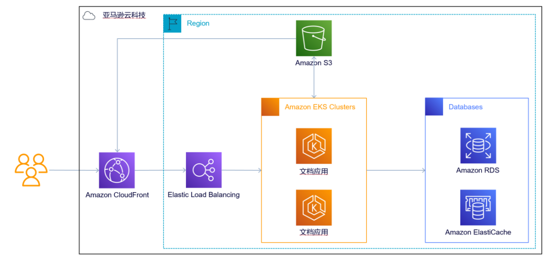 WPS Office 文档业务基于亚马逊云科技架构示意图