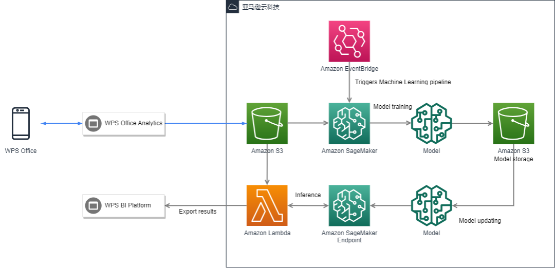 在人工智能、机器学习技术层面,金山办公通过 Amazon SageMaker 进行最终用户的购买预测,提升最终用户转化率,实现精细化运营。“基于 Amazon SageMaker 服务,我们构建了从用户识别、用户转换到流失用户挽回的一整套用户精细化运营路径,今后还将逐步延伸探索到更多的用户场景。” 金山办公全球技术负责人姚化鹏如是说。