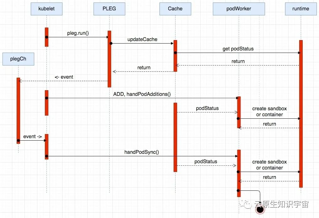 的工作流程。kubelet 启动之后,会运行起 PLEG