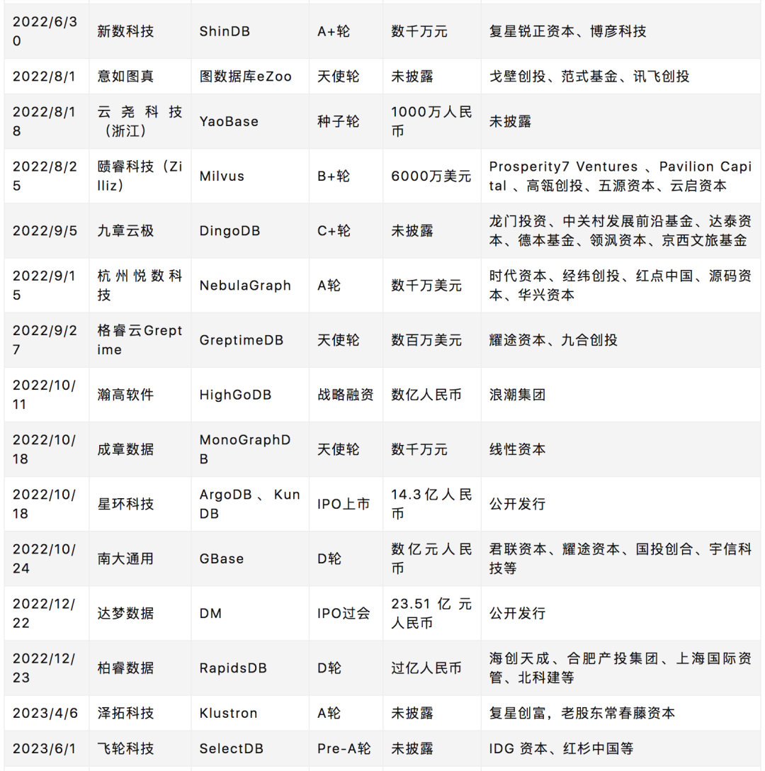 2023年中国数据库中标、融资一览