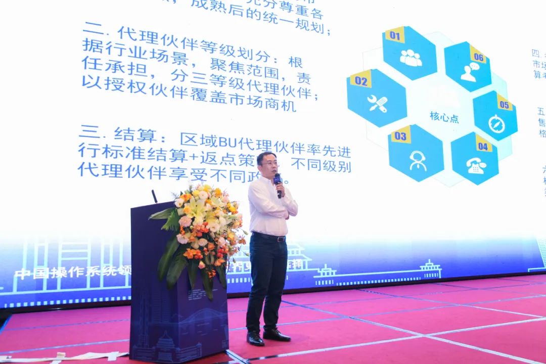 统信软件全国渠道总监李世波向在场伙伴公布了最新的渠道政策。他指出,一个完善的权益体系,是在价值创造、价值评价和价值分配上形成正向循环。我们将通过建立代理伙伴业务管理平台、专业的渠道运营体系、覆盖全渠道的推进体系等创新路径,融合汇聚各方伙伴能力,共绘无界生态。
