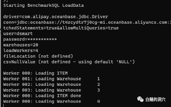 首先Build一下Warehouse。因为申请的内存不大,所以我只创建了一个20 个仓库的测试集,使用了一个50并发的测试用例。