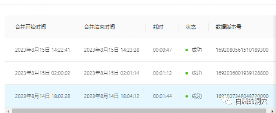 可以看出这次合并执行了47秒。数据库的基线版本也升级为一个新的版本。