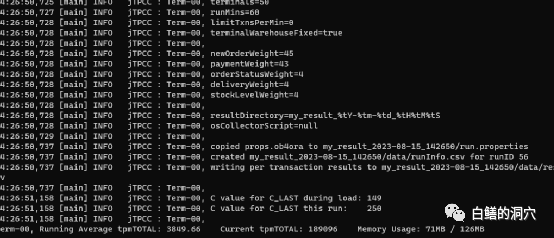由于是一个很小的测试环境,具体的TPMC指标也没有太大的意义。不过Benchmark压测的TPM指标还是挺稳定的。