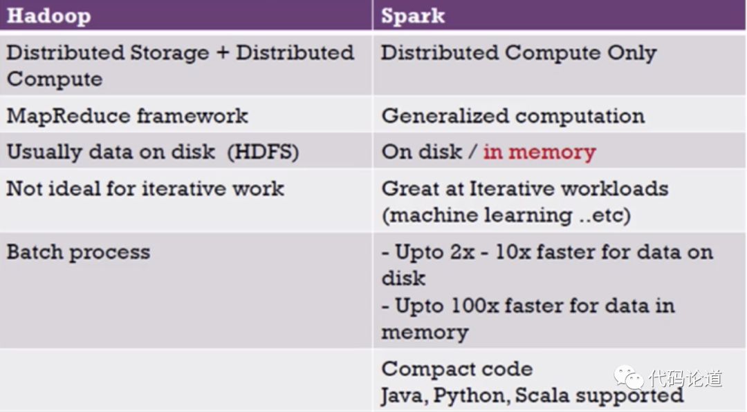 Hadoop对比Spark: