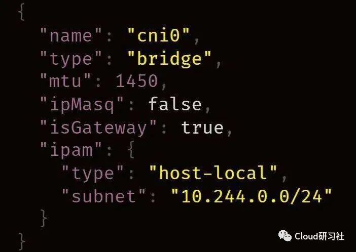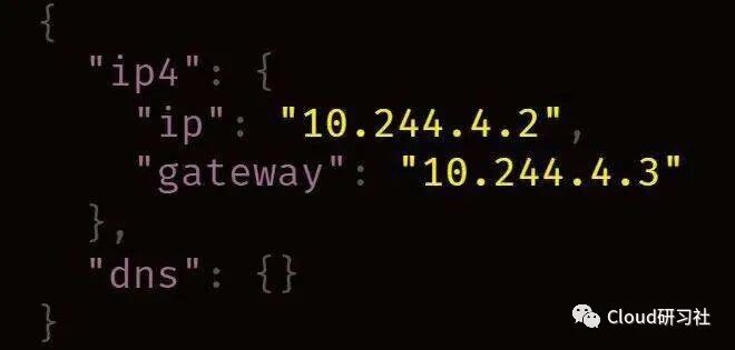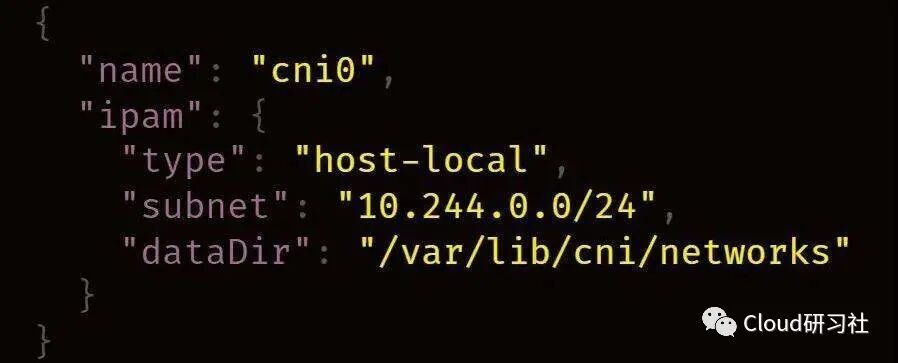 主机本地 IPAM(IP 地址管理)插件从中返回容器的 IP 地址,subnet将分配的 IP 本地存储在主机下dataDir指定的目录中/var/lib/cni/networks/<network-name=cni0>/<ip>/var/lib/cni/networks/<network-name=cni0>/<ip>文件包含 IP 分配到的容器 ID。调用时,主机本地 IPAM 插件返回以下有效负载: