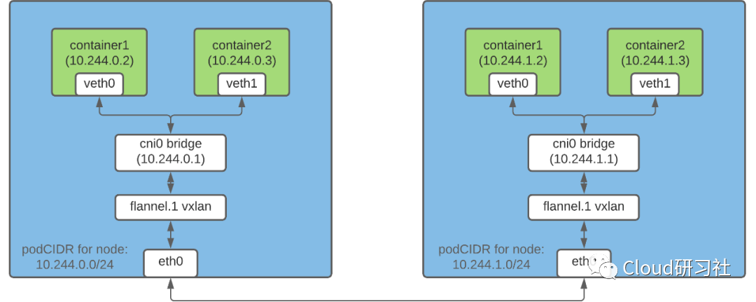 Kubernetes 网络模型的核心要求之一是每个 Pod 都拥有自己的 IP 地址并可以使用该 IP 地址进行通信。很多人刚开始使用 Kubernetes 时,还不清楚如何为每个 Pod 分配 IP 地址。他们了解各种组件如何独立工作,但不清楚这些组件如何组合在一起使用。例如,他们了解什么是 CNI 插件,但是不知道它们是如何被调用的。本文就介绍了各种网络组件在 Kubernetes 集群中是如何交互的,以及如何帮助每个 Pod 都获取 IP 地址。在 Kubernetes 中有多种网络设置方法,以及 container runtime 的各种选项。这篇文章将使用 Flannel 作为 network provider,并使用 Containered 作为 container runtime。在同一主机上运行的容器通过 IP 地址相互通信的方法之一是使用 Linux Bridge,即在 Kubernetes(和 Docker)世界中,创建 veth(虚拟以太网)设备。该 veth 设备的一端连接在容器网络命名空间,另一端连接到主机网络上的 Linux Bridge。同一主机上的所有容器都将这 veth pair 的一端连接到 Linux Bridge,它们可以通过 Bridge 使用 IP 地址相互通信。Linux Bridge 也被分配了一个 IP 地址,它充当从目的地到不同节点的 Pod 流出流量的网关。在不同主机上运行的容器可以通过其 IP 地址相互通信的方式之一是使用数据包封装(packet encapsulation)。Flannel 通过 vxlan 使用该功能,vxlan 将原始数据包封装在 UDP 数据包中并将其发送到目的地。在 Kubernetes 集群中,Flannel 会在每个节点上创建一个 vxlan 设备和一些路由表。每个发往不同主机上的容器的数据包都会通过 vxlan 设备,并封装在 UDP 数据包中。在目标位置,它会提取封装的数据包,然后将数据包路由到目的地 Pod。CRI(容器运行时接口)是一个插件接口,允许 kubelet 使用不同的 container runtimes。各种 container runtimes 都实现了 CRI API,这使用户可以在 Kubernetes 安装中使用他们想要的 container runtimes。CNI(容器网络接口)项目包含一个为 Linux 容器提供基于通用插件网络解决方案的规则。它由各种插件组成,这些插件在配置 Pod 网络时执行不同的功能。CNI 插件是遵循 CNI 规范的可执行文件。如果要求所有 Pod 具有 IP 地址,那么就要确保整个集群中的所有 Pod 的 IP 地址是唯一的。这可以通过为每个节点分配一个唯一的子网来实现,即从子网中为 Pod 分配节点 IP 地址。当 nodeipam 传递给 kube-controller-manager 的 --controllers 命令行标志时,它将为每个节点分配来自集群 CIDR(集群网络的 IP 范围)的专用子网(podCIDR)。由于这些 podCIDR 是不相交的子网,因此它可以为每个 Pod 分配唯一的 IP 地址。当 Kubernetes 节点首次在集群上注册时,会被分配一个 podCIDR。要更改分配给集群中节点的 podCIDR,需要先注销节点,然后使用应用于 Kubernetes 控制平面的任何配置更改来重新注册节点。podCIDR 可以使用以下命令列出节点的名称:Kubelet、Container Runtime 和 CNI 插件交互当在节点上调度 Pod 时,一启动 Pod 就会发生很多事情。这里我们仅关注与 Pod 配置网络有关的动态。一旦在节点上调度了 Pod,将配置网络并启动应用程序容器。Container Runtime 与 CNI 插件的交互每个 network provider 都有一个 CNI 插件,container runtime 会调用该插件,在 Pod 启动时配置网络。使用容器化作为 container runtime,容器化 CRI 插件将调用 CNI 插件。每个 network provider 都在每个 Kubernetes 节点上安装了一个代理,以配置 Pod 网络。安装 network provider agent 后,它会随 CNI 一起配置或者在节点上创建,CRI 插件会使用它来确定要调用哪个 CNI 插件。CNI 配置文件的位置是可配置的,默认值为 /etc/cni/net.d/<config-file>。集群管理员需要在每个节点上交付 CNI 插件。CNI 插件的位置也是可配置的,默认值为 /opt/cni/bin。如果使用 containerd 作为 container runtime,则可以在 containerd config 部分下 [plugins."io.containerd.grpc.v1.cri".cni] 指定 CNI 配置和 CNI 插件的路径。