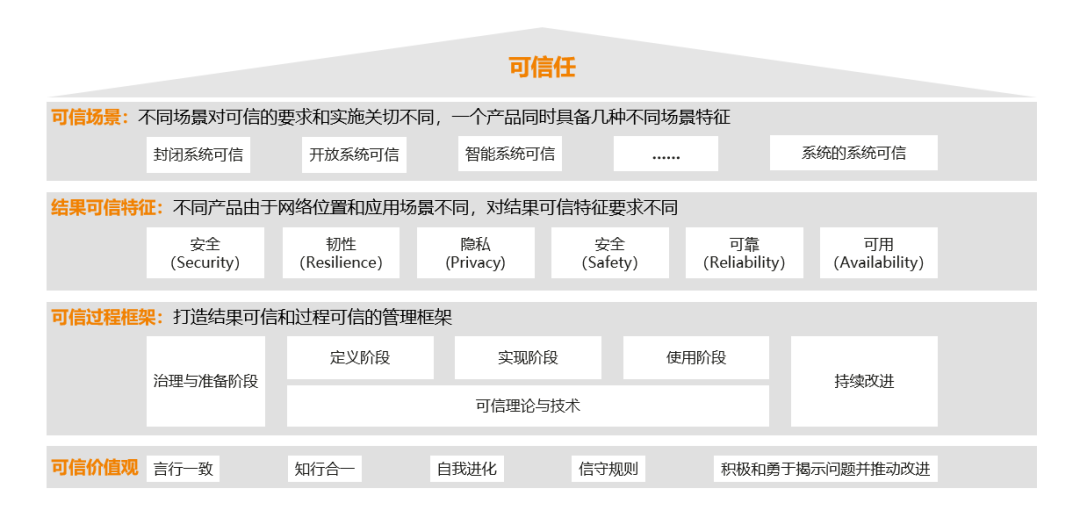 华为的可信框架构建起了从产品定义、系统设计、软件实现到交付运维运营等所有环节、从结果到过程的全部可信,保证产品从创新到客户落地的整个过程是完整、双向一致可追溯的。