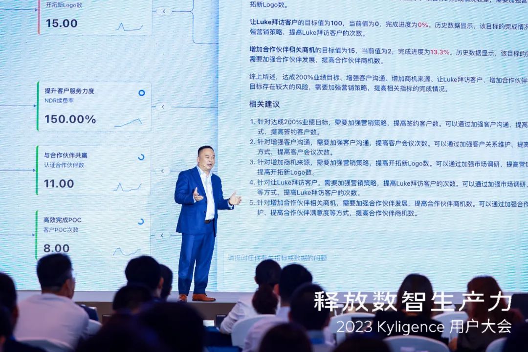 二是,从经营维度看,Kyligence Copilot能够赋能运营释放管理的潜力。在实际操作中,基于Kyligence Zen指标平台能够以目标管理的形式把指标进行有机的组合,而Kyligence Copilot则可以基于指标背后的逻辑,向企业用户提供“KPI评估及建议、归因分析,以及行动建议”等。