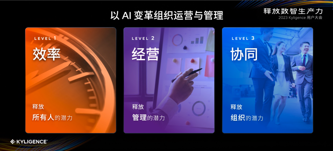 具体而言,以Kyligence Copilot为代表的AI技术能够从效率、经营、协同三个方面给整个组织的运营与管理带来变革。