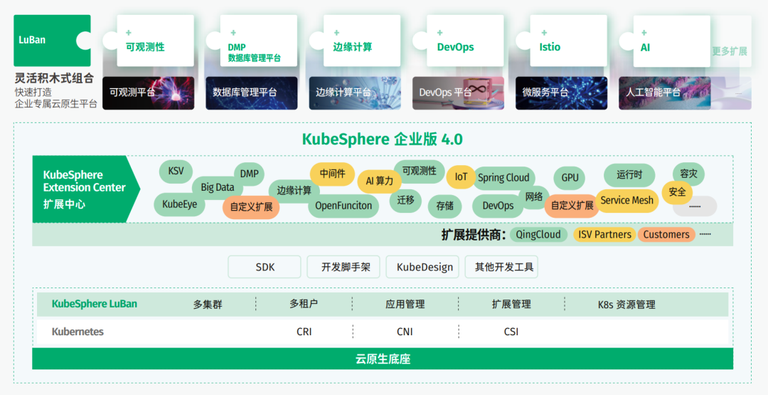 鲁班 (LuBan),是中国古代工匠的始祖,已成为广大劳动人民智慧与创造力的象征。KubeSphere LuBan 是一个分布式的云原生可扩展开放架构,为扩展组件提供可热插拔的微内核。