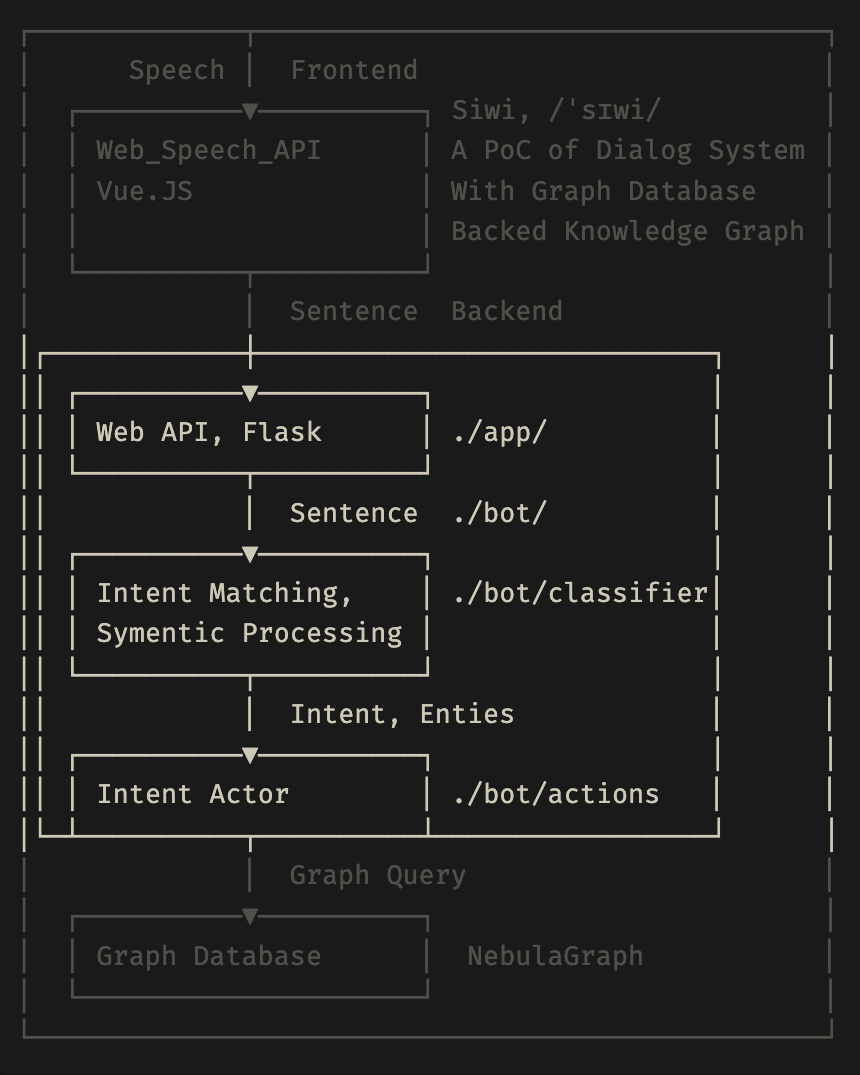 这里,我们以基于 Knowledge Graph 的 QA 系统为例,具体展开讲讲这个问题如何解决。大家熟悉下图的架构的话,其实知道这是我之前做的一个名叫 siwi 的问答系统,它主要基于 NebulaGraph 官方的 basketballplayer 的数据集实现。