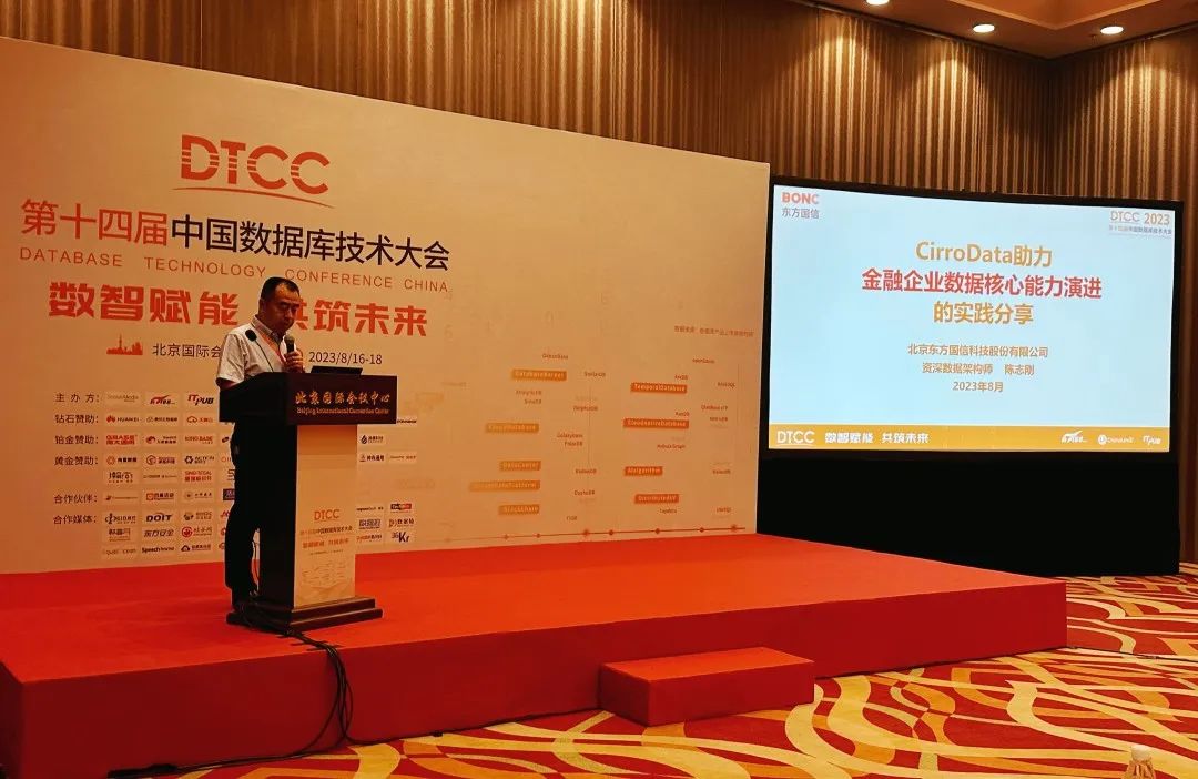 8月16日~18日,由IT168联合旗下ITPUB、ChinaUnix两大技术社区主办的第十四届中国数据库技术大会(DTCC 2023)在北京国际会议中心召开,大会以“数智赋能,共筑未来”为主题。东方国信资深数据架构师陈志刚在大会上发表了《CirroData助力金融企业数据核心能力演进的实践分享》主题演讲,同时也展示了CirroData家族多款数据库产品、生态工具以及相关大数据体系,包括分布式分析型数据库,湖仓一体,数据底座,实时数仓,多数据中心管理平台,时序数据库和图数据库,运维平台,数据治理平台,开发平台等,吸引众多观众驻足咨询。