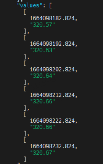 可以看到只取到了4个值,与期望的 6个值不相符,即发生了“掉点”的情况,监控面板按指定频率展示数据会有频繁掉0现象。