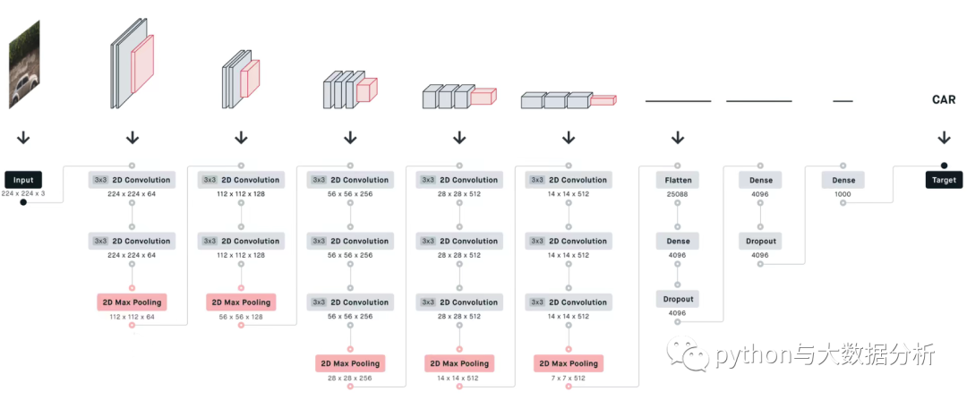 VGGNet发布于 2014 年,作者是 Karen Simonyan 和 Andrew Zisserman,该网络表明堆叠多个层是提升计算机视觉性能的关键因素。