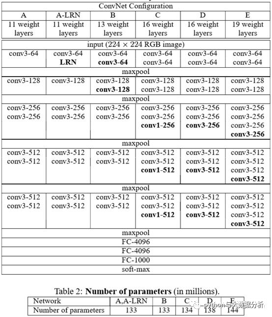 VGG模型分为4个深度,即:11、13、16、19 weight layers。其中,较为经典的是深度为16和19的VGG16、VGG19。