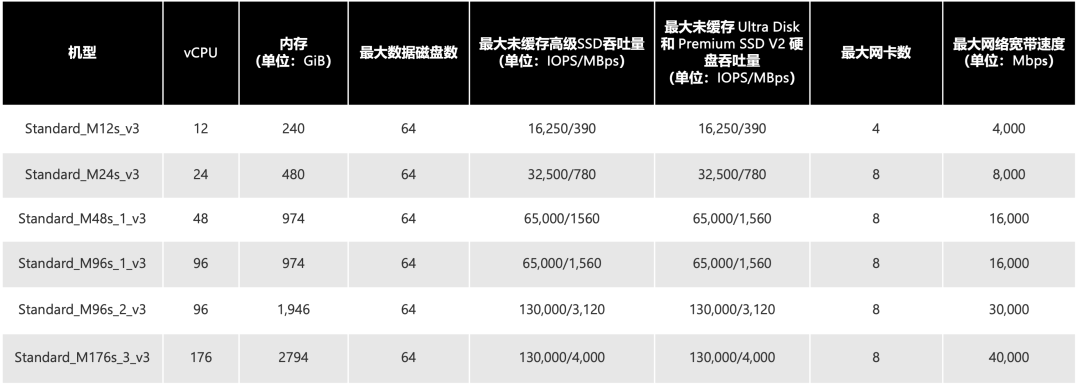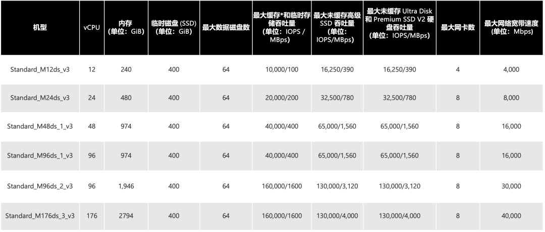 ● 利用 Azure Boost,与之前的 M 系列产品相较,Mv3 MM 网络吞吐量提升了约 25%,远程存储吞吐量提升了 1.5 倍。