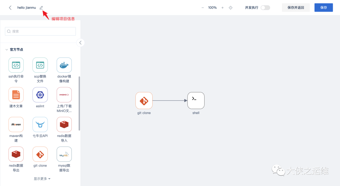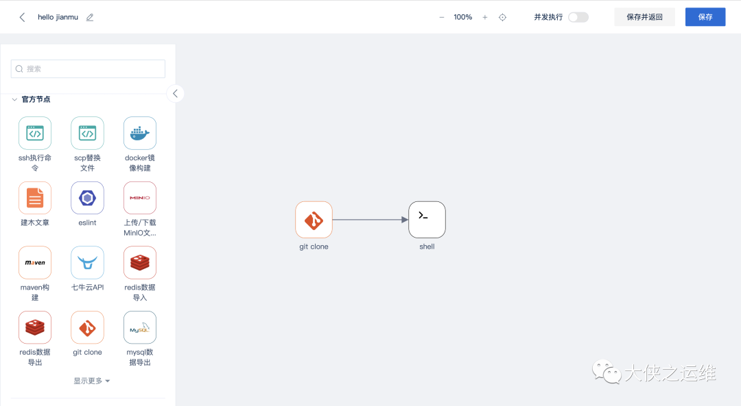通过示例项目hello jianmu体验建木图形化流程编排,完成你的第一个建木流程。