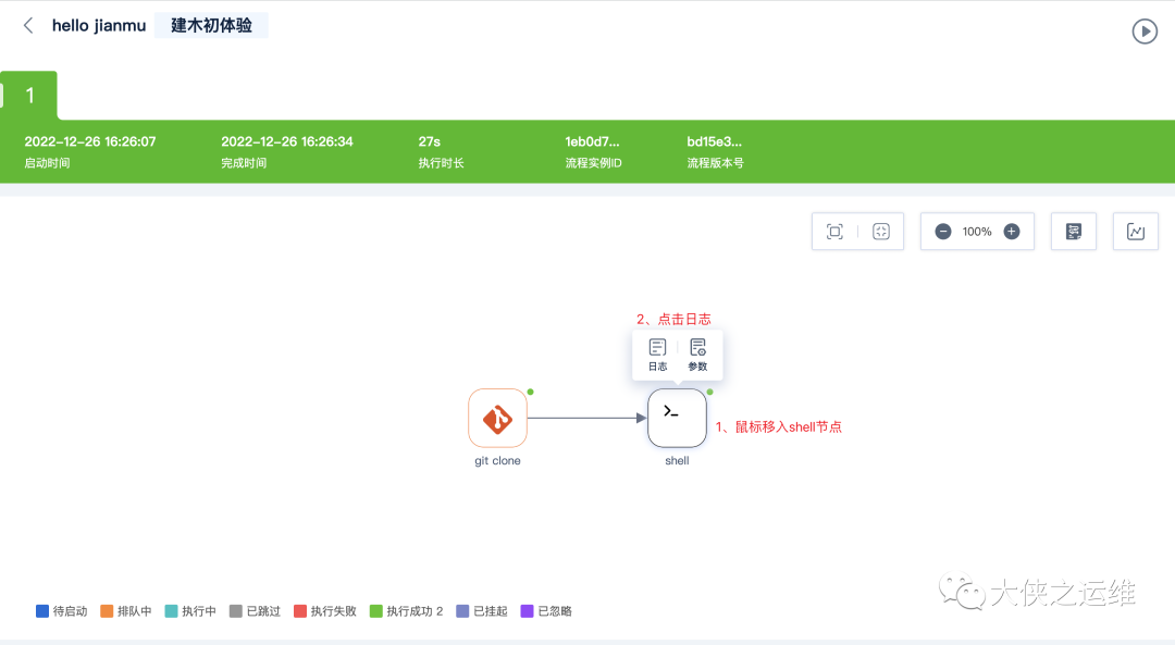 10、等待执行结束查看shell节点日志即可。