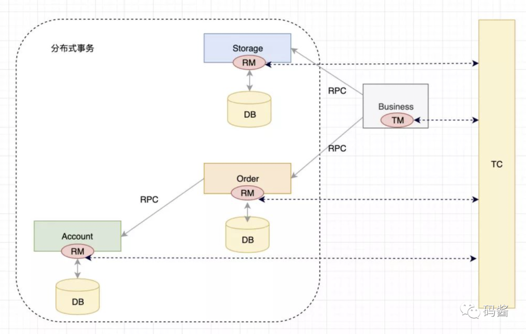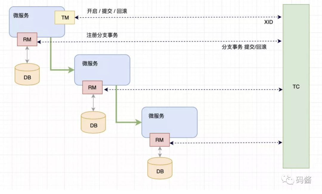 TC 指挥这个 XID 下面的所有分支事务进行提交、回滚。