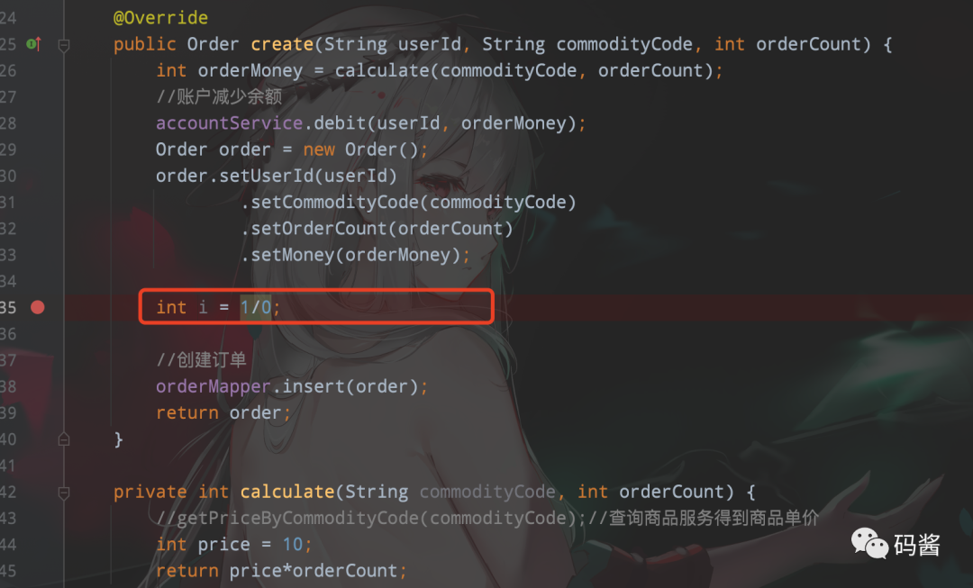 7.增加异常测试,查看数据库(由于 Seata 删除回滚日志的速度很快,所以要想在表中看见回滚日志,必须要在某一个服务上打断点才看的更明显。)