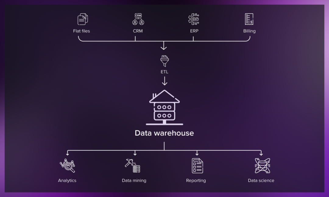 数据仓库被定义为“集成来自一个或多个不同数据源的中央数据存储库”,用来分析来自BI系统和报表系统等一线业务应用的关系型数据。它是一种按主题区域组织的业务抽象表现,通过预先定义数据模式和结构,优化和加速SQL查询,结构化的数据在被清理、丰富、转换后成为可信的来源。