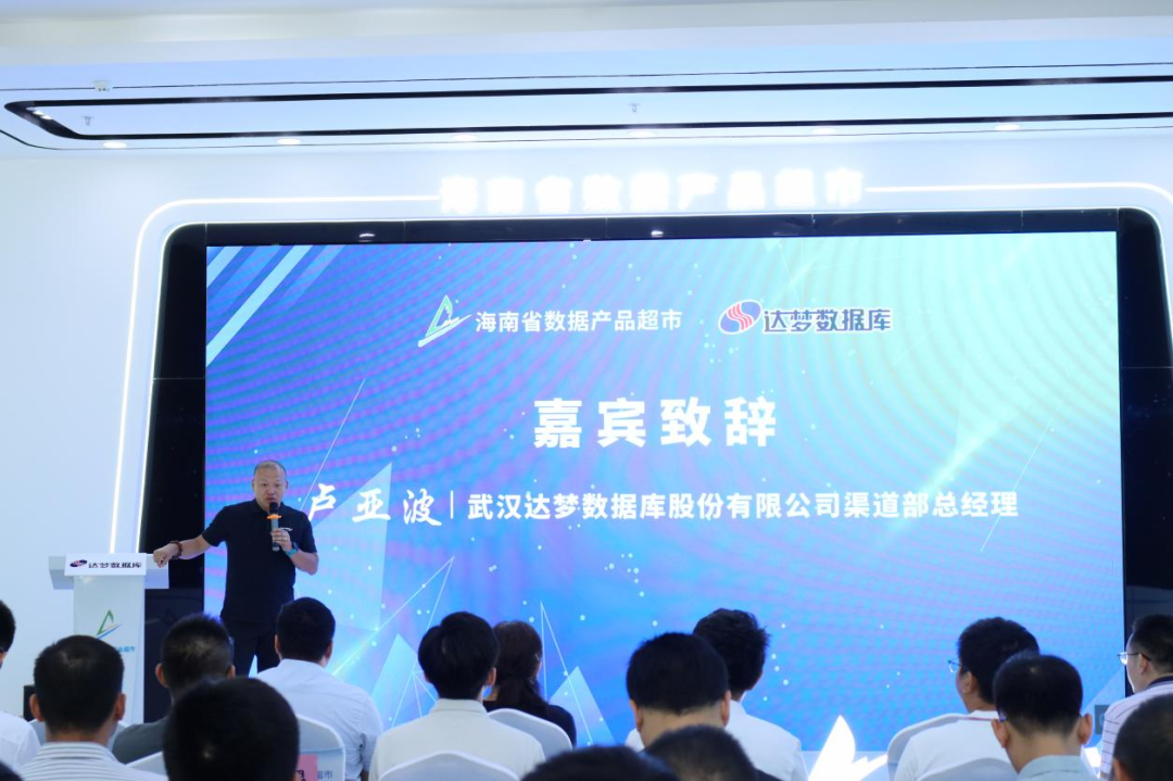 会上,达梦数据渠道拓展部总经理卢亚波和海南省数据产品超市总经理陈文思发表致辞。