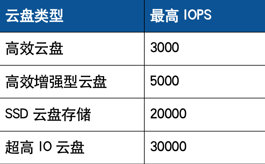 支持高效云盘、高效增强型云盘、SSD云盘存储、超高IO云盘等不同云盘类型,建议使用SSD云盘以上的类型以保证数据库性能。不同云盘类型支持的最高IOPS如下: