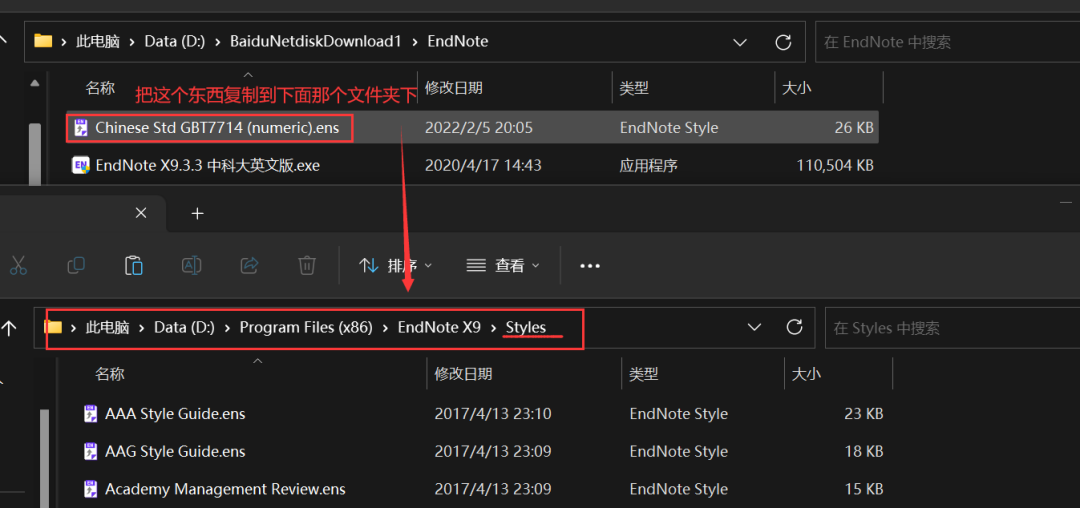 因此我们需要把这个东西放到安装的根目录下(也就是安装包下面的“Chinese Std GBT7714 (numeric)”这个文件):