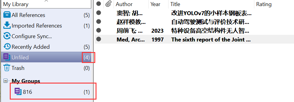 在开始之前我们可以先分个组以管理自己的文件,如果不分组的话,它所有的文件都会放在unfiled这个目录下: